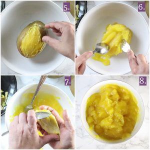 - Alternatively, you can microwave the mangoes too. Place the large mangoes in a microwavable bowl and fill it with water. Microwave them on HIGH for about 10-12 minutes or until soft. Finally, peel the mangoes and follow the recipe as instructed.
