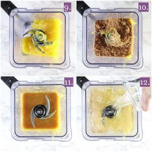 Rinse the mangos under tap water. Gently rub them with your hands to remove any debris or deposits. Set aside. Add 1.5 cups of water to the Instant Pot insert. Add the rinsed mangoes to the insert. Place the lid on the Instant Pot. Seal and secure. Press the ‘Pressure cook button’ and cook on high pressure for 10 minutes. Make sure the venting knob is in the sealing position.Allow the pressure to release naturally. Once the pin drops, carefully open the Instant Pot. After the mangoes are boiled, they will lose their vibrant, rich green color and become soft and pulpy. Remove the mangoes from the boiled water and immerse them in ice-cold water to stop the cooking process altogether.Once the mangoes are comfortable to touch, peel the outer skin of the mangoes.Use a spoon to scoop out the pulp from the boiled mangoes. Scrape off the seed and extract all the pulp. Transfer the cooled pulp to a blender. Add jaggery. Blend until smooth. Pour in 4.5 cups of water and blend until thoroughly combined.