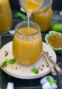 Blend until smooth and pass through a fine mesh strainer to obtain a smooth mixture that can be added to the concentrate of Aam Panna.