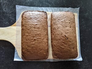 The cake loaves are freshly baked; therefore, it needs time to set. Keep the cake in its pan for 10 minutes. Then carefully remove the cake from the pan and let it cool on a rack for an hour or completely cooled.