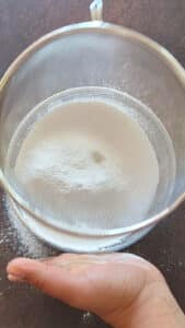 Sift the dry ingredients through a sieve to remove all foreign particles and break up lumps. Sifting also helps the dry ingredients to distribute evenly in the batter.
