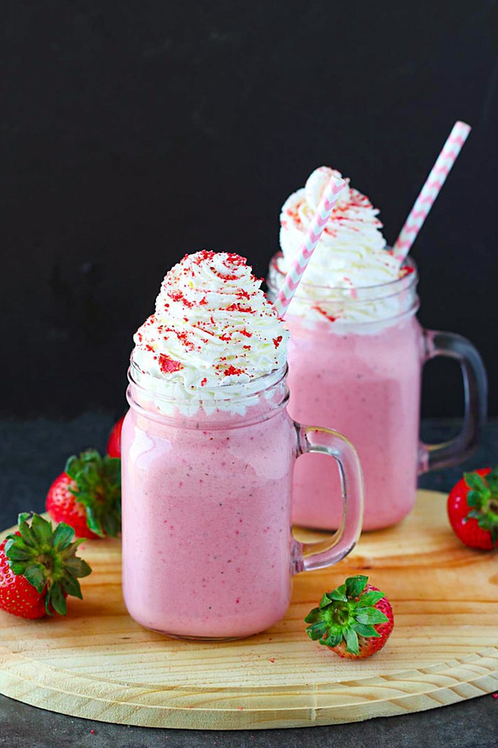 Strawberries — The star ingredient of this decadent shake recipe, use the perfectly ripened strawberries to achieve the desired creaminess and flavor. You can use frozen strawberries or fresh juicy ones; both taste stunning – but fresh fruits are always juicier and make a super creamier blend.