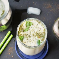 A staple in every household during summer months – Salted mint lassi recipe also referred to as namkeen lassi. Very cool and refreshing! Savory mint lassi is a traditional Indian summer drink that is prepared by blending yogurt with spices until its frothy. In Punjab, no meal is completed without having a full glass of lassi.