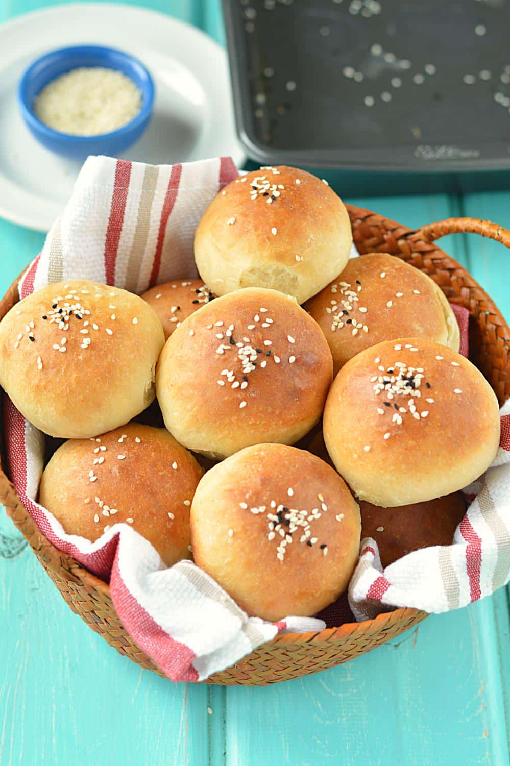 Deliciously soft and fluffy Homemade Mini Burger Buns topped with sesame seeds and nigella seeds. Perfect for picnic parties and BBQ. A must try recipe!!