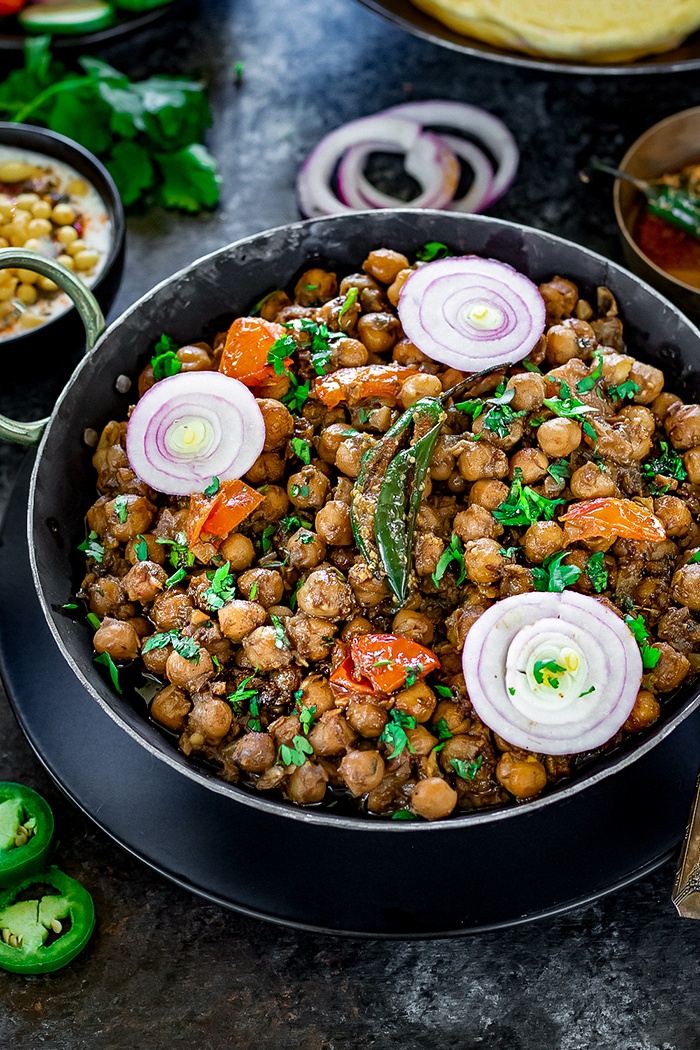All the above-mentioned spices add the right balance of sweetness and tanginess. The heat to this chana is added in the form of red chili powder. You can easily adjust the spice level to your liking.
