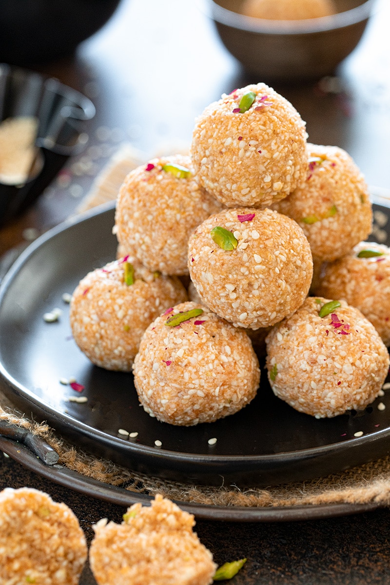 Til ke laddu (Tilkut), or sesame seeds energy balls, are traditional Indian sweets prepared during the winter festivals of Makar Sankranti and Lohri.