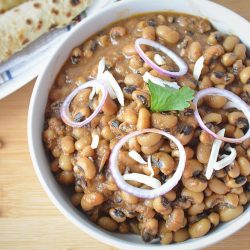RECIPE DETAIL – Best part, no soaking required. Wash and clean beans, add it to the slow cooker along with other ingredients, set the timer and before dinner – your yummy meal will be ready. Depending on the slow cooker model cooking time may vary. Adjust seasoning, consistency of the gravy, top it with some chopped cilantro leaves and enjoy it hot with warm tandoori rotis and Jeera rice. If you are looking for a cooktop lobia recipe – click here.