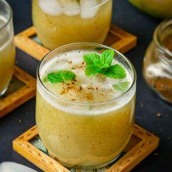 Can I store this Aam ka Panna? Yes, this delicious summer drink can be stored in the refrigerator in an air-tight container for about a week. Can I boil mangoes in the traditional pressure cooker? Absolutely, you can! You can boil the mangoes for this drink in many different ways –- You can boil them in an open pan over a stovetop. The rest of the recipe instructions remain the same.