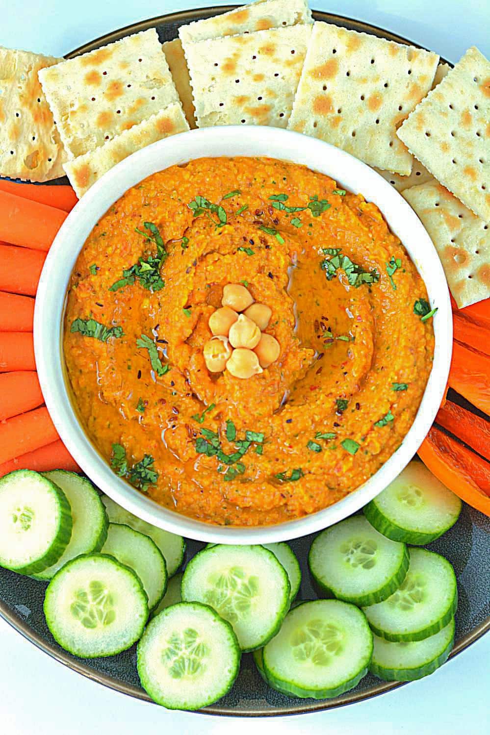 Enjoy homemade spicy chickpea hummus recipe with fresh veggies, toasted breads, chips and crackers. A great spread for sandwiches and toast too! I invite all hummus lovers to give this recipe a try and I am sure you are going to ♥ ♥ it.