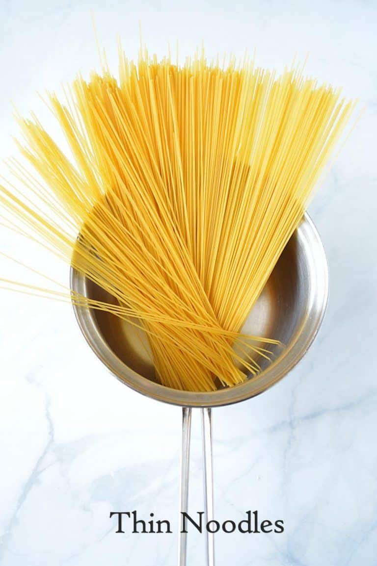 Spaghetti — I have used uncooked thin spaghetti for this recipe. If you don’t have spaghetti, you can use your favorite noodle.