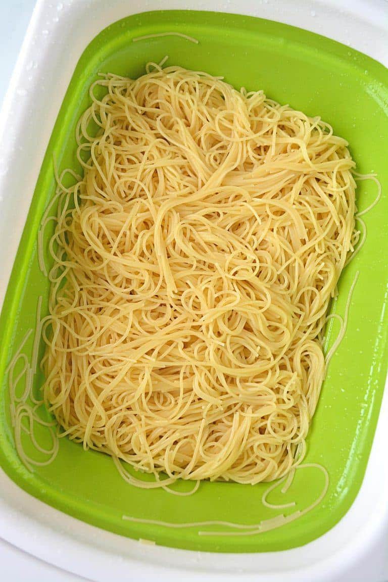 - Once done, drain through a colander and wash it under cold running time to stop further cooking. Set aside.