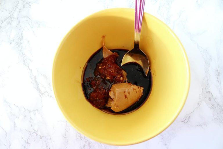The mishmash of peanut butter, soy sauce, and chili sauce adds the perfect kick to this recipe.