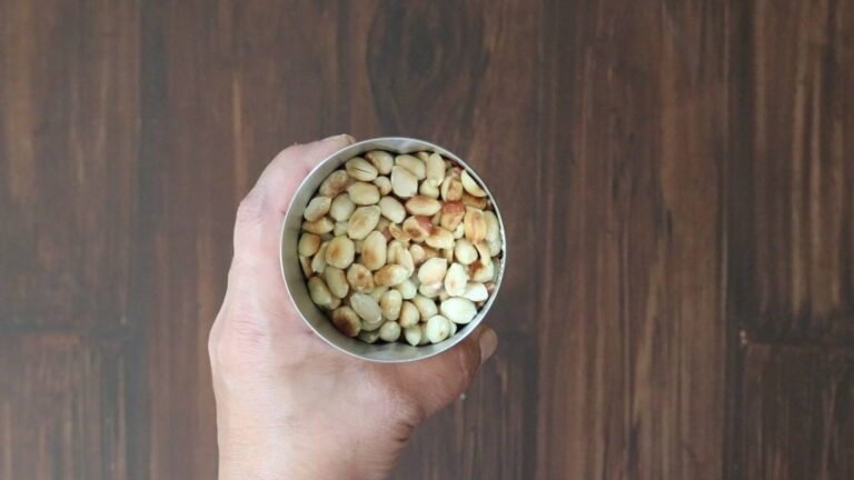 - Now rub the peanuts between your hands and gently blow air into the pan to separate the peanuts’ skin.
