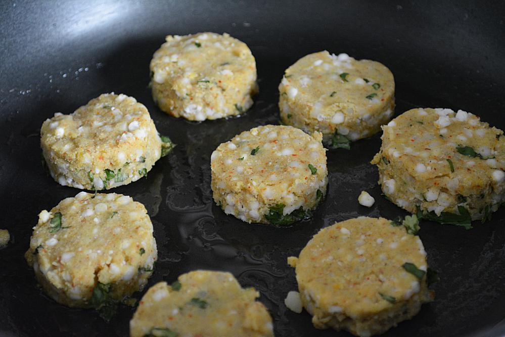 - Transfer cutlets/patties onto the hot pan and cook until evenly brown on both sides – turning occasionally.