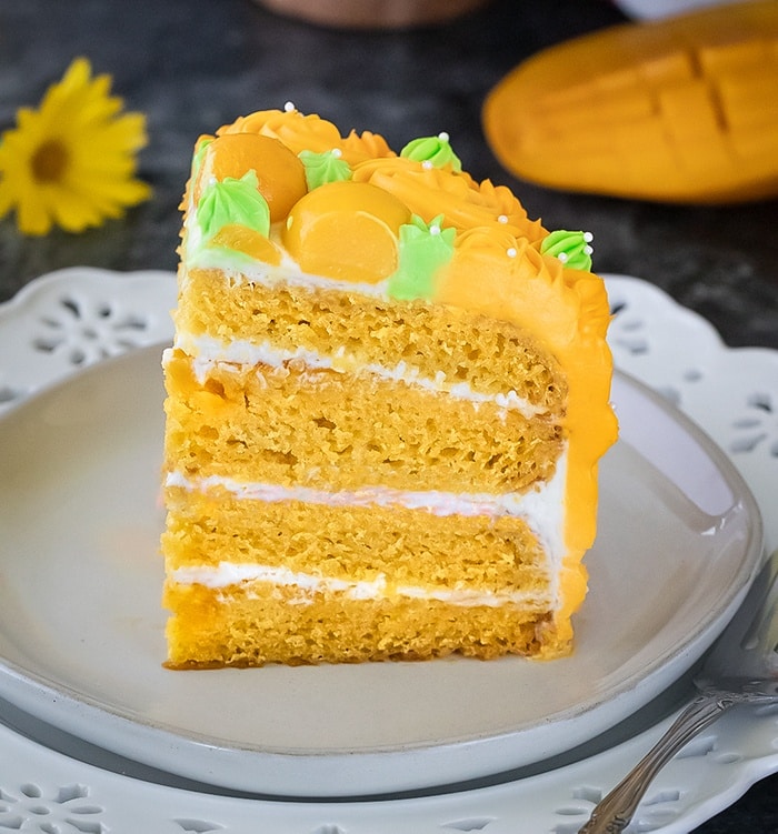The whipped cream mango-flavored frosting tops the cake with glamour and makes it completely irresistible.